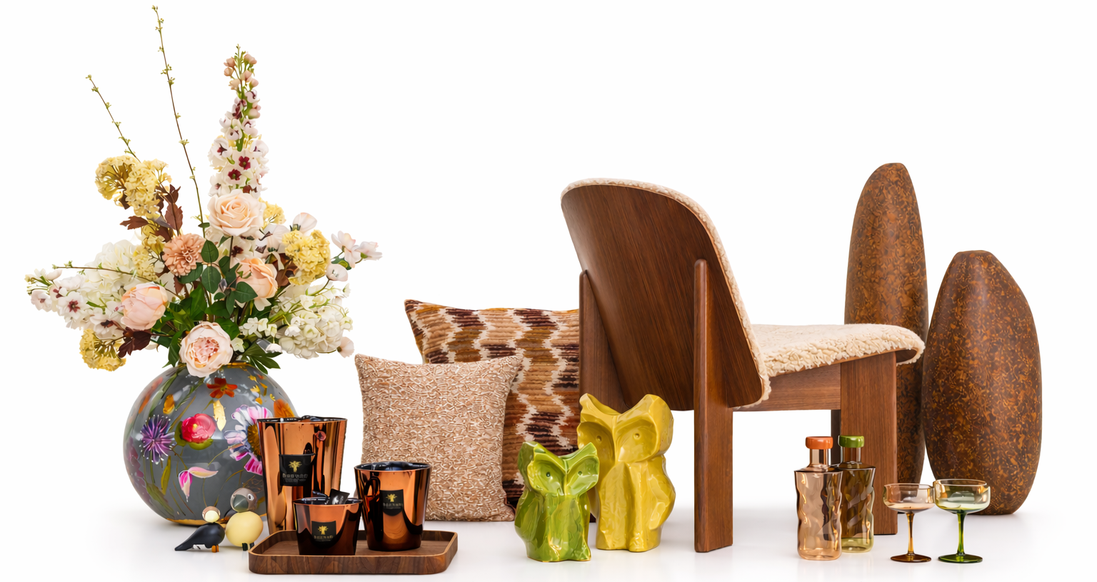 In onze winkel ontdek je een steeds vernieuwende selectie decoratie — van schalen en vazen tot geurkaarsen en verfijnde cadeaus, mee evoluerend met de seizoenen en actuele trends.