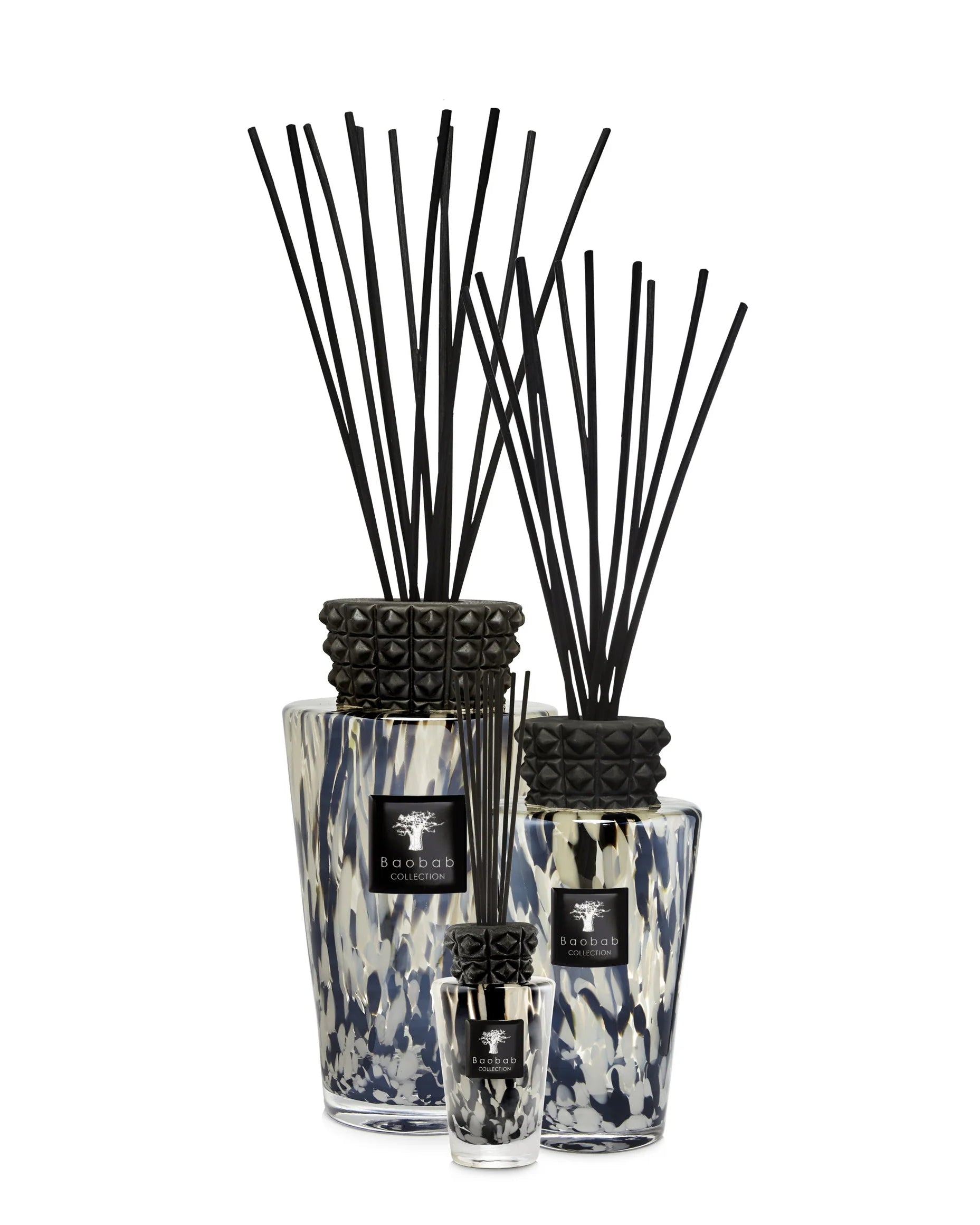 De Black Pearls diffuser is handgeblazen door glasambachtslieden en afgewerkt met zwarte en iriserende details die verwijzen naar de zeldzame parels van de Stille Oceaan, bekroond met een sculpturale keramische dop.