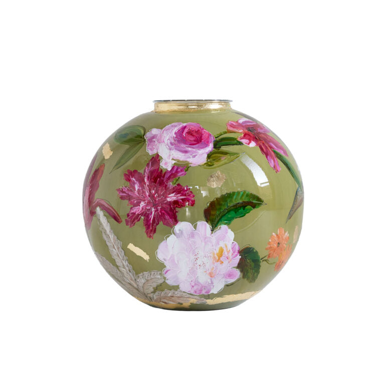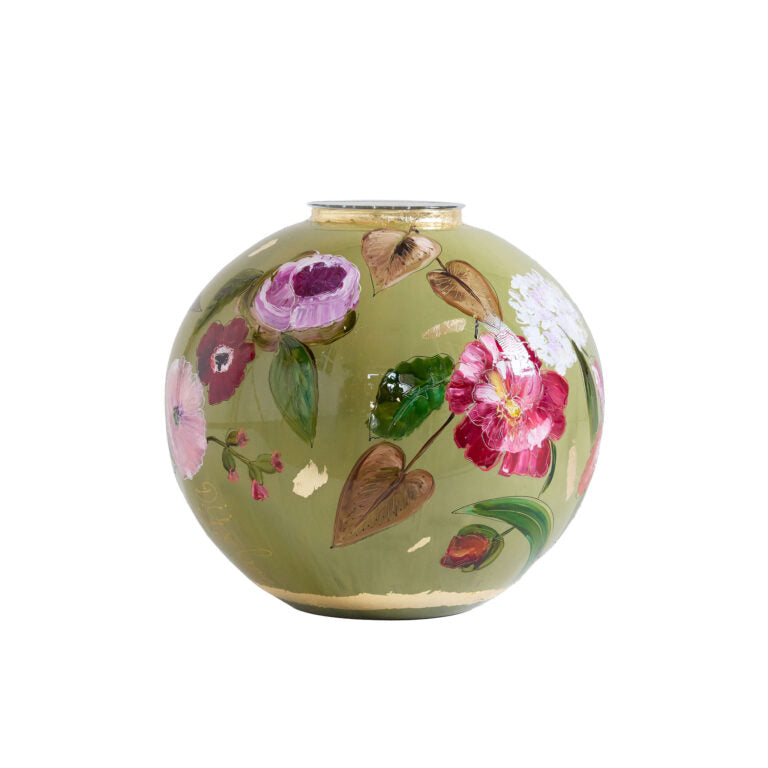 De Verde vaas dankt haar naam aan het Italiaanse woord voor groen en verwijst naar de warme olijfgroene ondergrond. De rood-roze bloemen vormen een krachtig en harmonieus contrast dat meteen de aandacht trekt. Ontworpen door Doortje IJpelaar, straalt deze vaas karakter en verfijning uit.