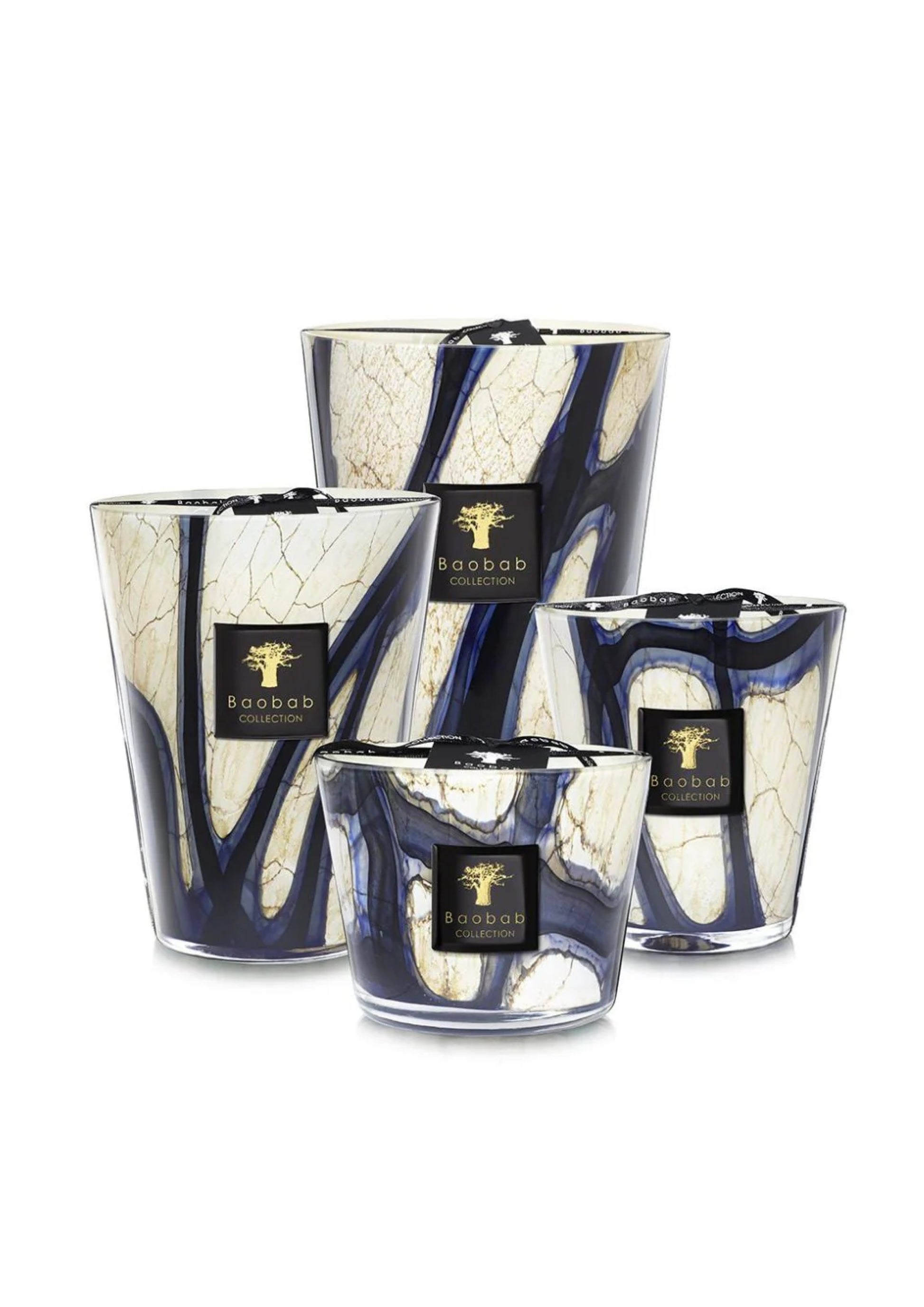 De Stones Lazuli geurkaars straalt tijdloze elegantie uit, met gemarmerd glas in diepe blauwtinten dat de krachtige persoonlijkheid van lapis lazuli weerspiegelt.