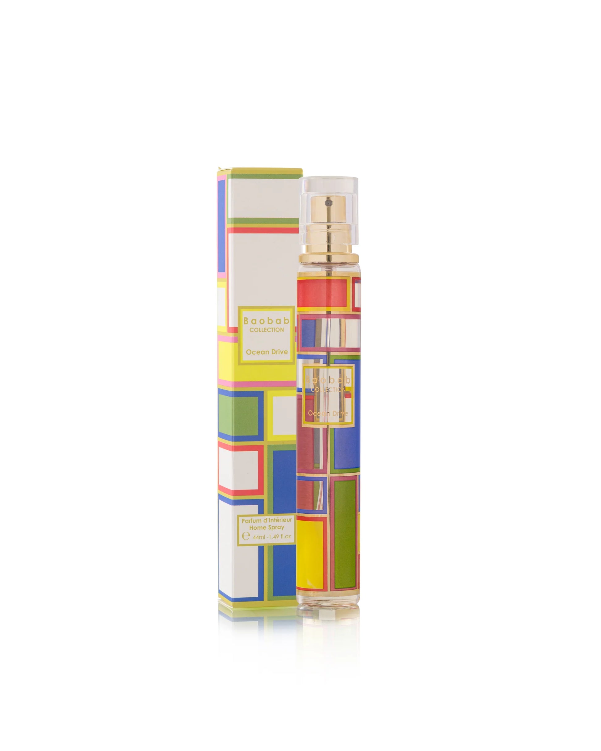 De My First Baobab huisparfum spray is verpakt in een compact formaat van 44 ml, ideaal om mee te nemen op reis of om discreet te plaatsen op strategische plekken in huis. De flacon is versierd met dezelfde zeefdruk als de kaarsen en diffusers uit de My First Baobab-collectie en fungeert zo ook als een klein decoratief object op bijvoorbeeld een salontafel.